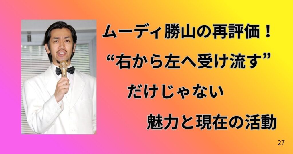 ムーディ勝山の再評価!“右から左へ受け流す”だけじゃない魅力と現在の活動